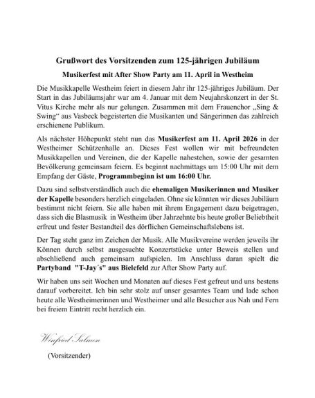 Im Jahr 2026 steht unser 125-jähriges Jubiläum an. Das wollen wir an drei Terminen gebührend feiern. Die Vorbereitungen dazu laufen bereits auf Hochtouren.